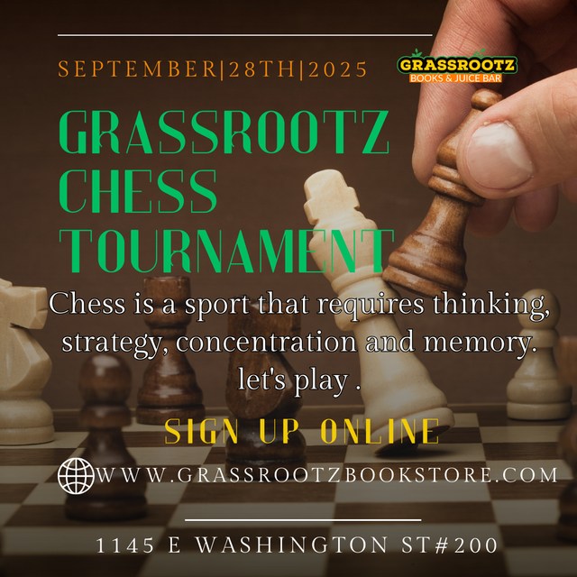Join us for another Chess Tournament September 28th. $5 for Entry into Tournement.